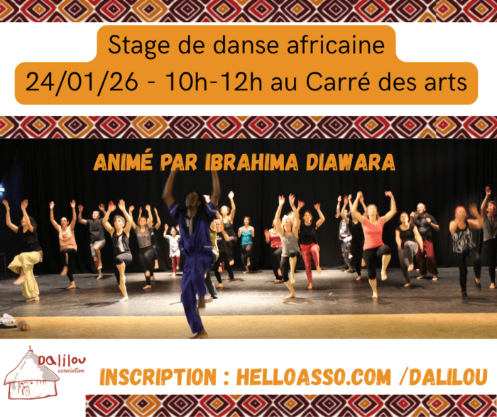 Nous espérons vous y retrouver nombreuses et nombreux, pour continuer à découvrir de nouveaux pas de danse avec Ibrahima DIAWARA, aux sons des percussions du collectif Dalilou !